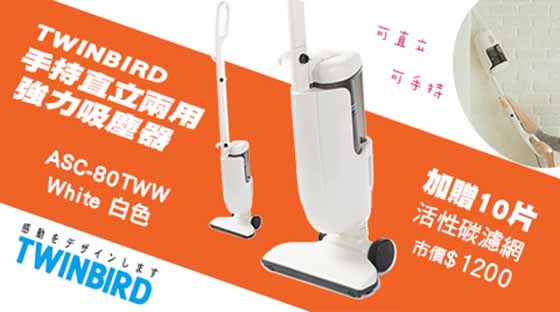 日本TWINBIRD雙鳥-強力手持直立兩用吸塵器(ASC-80TW)+贈加強型活性碳濾網10片" 來試試看, 日本TWINBIRD雙鳥-強力手持直立兩用吸塵器(ASC-80TW)+贈加強型活性碳濾網10片" 好像不賴, 日本TWINBIRD雙鳥-強力手持直立兩用吸塵器(ASC-80TW)+贈加強型活性碳濾網10片" 怎樣購買, 日本TWINBIRD雙鳥-強力手持直立兩用吸塵器(ASC-80TW)+贈加強型活性碳濾網10片" 覺得實用